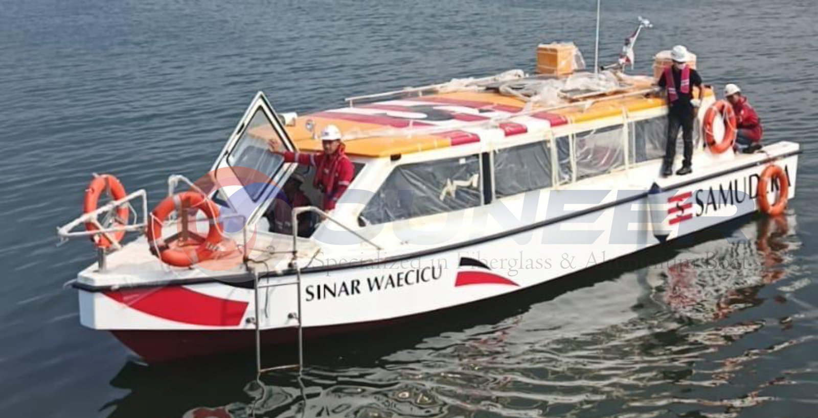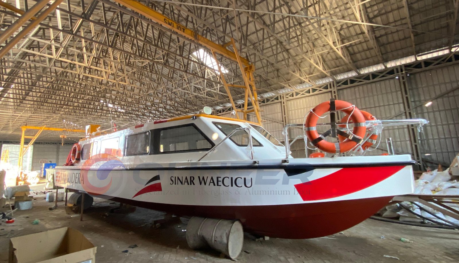 Kapal Sinar Waecicu merupakan salah satu proyek kebanggaan kami dalam mendukung akses pendidikan di wilayah perairan terpencil Indonesia. Dirancang khusus sebagai kapal sekolah, speed boat ini bertugas mengantar dan menjemput para pelajar setiap hari melewati jalur laut. Kapal ini dibuat dari fiberglass berkualitas tinggi yang ringan namun kuat, sangat cocok untuk operasional harian di wilayah kepulauan. Dengan desain tertutup (semi cabin) dan jendela kaca besar, siswa dapat menikmati perjalanan dengan nyaman dan aman dari terik dan hujan.