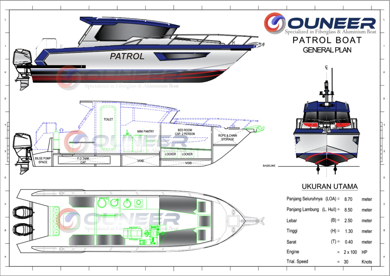 Beranda / Speedboat / PATROL BOAT ALUMINIUM & FIBERGLASS - Speedboat Patroli Terbaik dari Ouneer Indonesia
