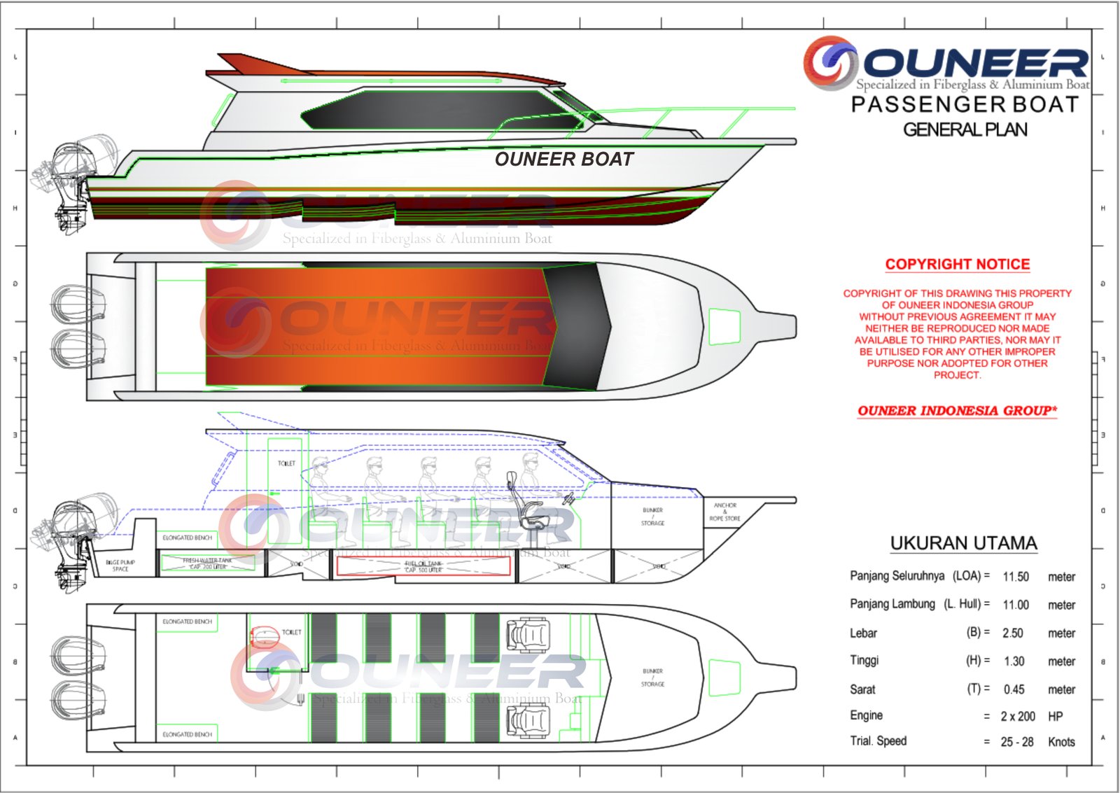 Berikut spesifikasi Pleasure boat atau speed boat wisata PT. Ouneer Indonesia Tawarkan :