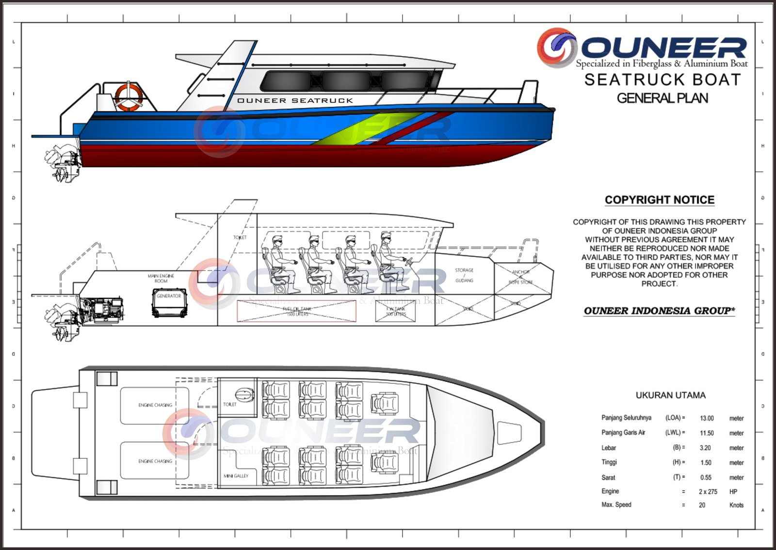 Berikut adalah spesifikasi seatruck boat produksi ouneer indonesia group :