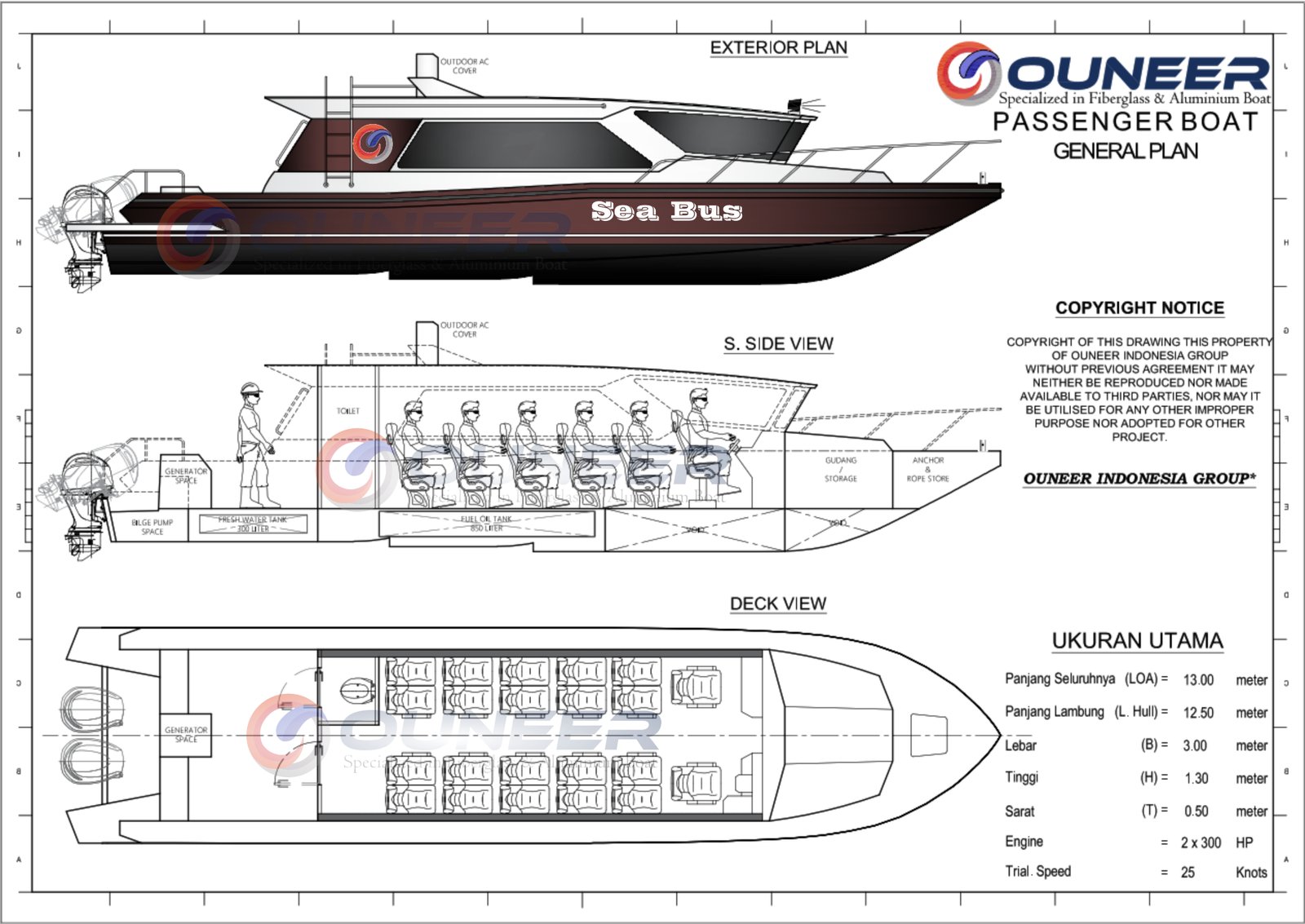 Passenger Boat produksi ouneer indonesia dilengkapi dengan sistem teknologi keselamatan dan keamanan yang sudah terintergrasi di dalam speedboat