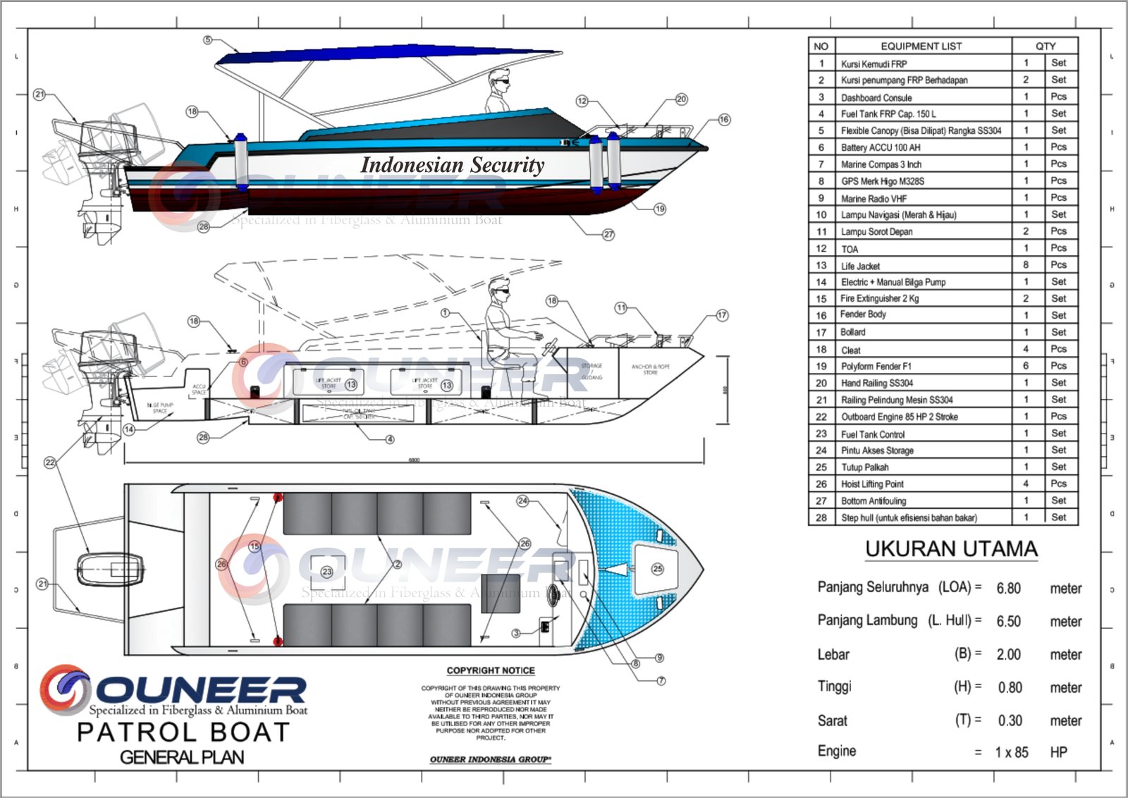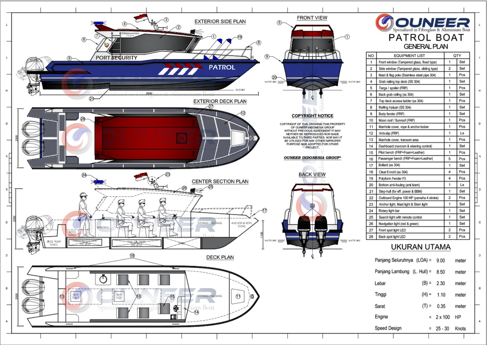 Beranda / Speedboat / PATROL BOAT ALUMINIUM & FIBERGLASS - Speedboat Patroli Terbaik dari Ouneer Indonesia