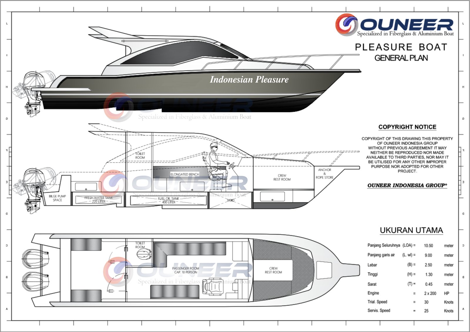 Pleasure Boat dan speedboat wisata produksi ouneer indonesia dilengkapi dengan sistem teknologi keselamatan dan keamanan yang sudah terintergrasi di dalam Pleasure Boat dan speedboat wisata.