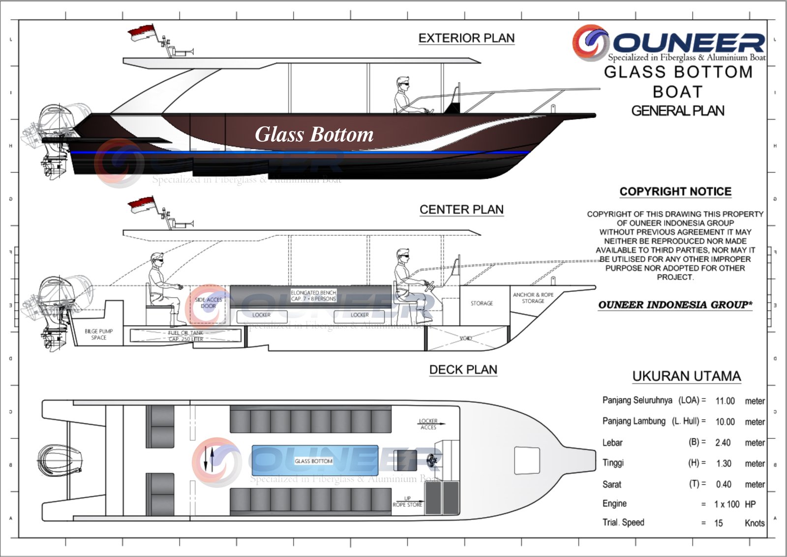 Please fill the information below to build your own Glass Bottom Boat 11 meter, Speedboat Fiberglass & Aluminium – Ouneer Indonesia